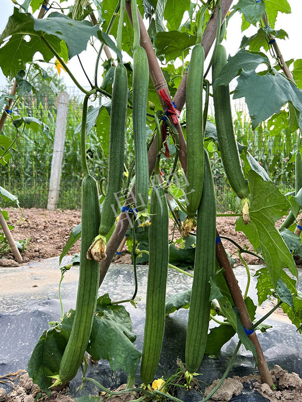 反交種子,極早熟,果皮更翠綠,坐果更多,產(chǎn)量更高;果長45~50厘米,果重約400克,品味好。用種:15袋/畝。